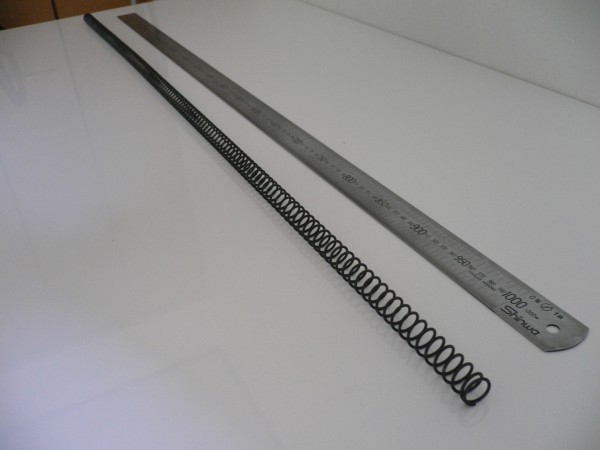 この眼鏡の用なスプリングが、海外製のためか、非常にかたくもう少し弱い力でブレーキが利くようにして欲しいと、依頼がありましたので、材料の直径を小さくしたもので、製作しました。